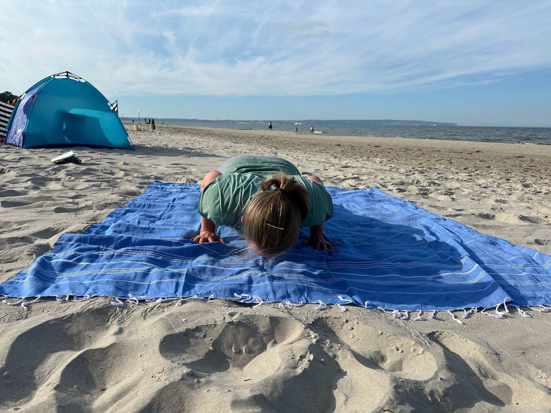 “Practice and all is coming.” (Pattabhi Jois) Wenn du an meinen YogaZeiten teilnimmst, kennst Du mein Mantra „alles kann – nichts muss“. Das ist mit ein Grund, warum ich Yoga liebe, da es mich an Grenzen heranführt – körperlich wie geistig – und ich jeden Tag neu entscheiden darf, mich auf diese Grenzen einzulassen. Klingt im Moment etwas kryptisch für dich? Wir sind jeden Tag etwas anders drauf, bringen jeden Tag ein persönliches Päckchen mit auf die Matte. Und das stärkt uns manchmal und manchmal schwächt es uns. Bei uns Frauen spielt auch der weibliche Zyklus eine Rolle, wieviel Kraft wir in uns spüren. Yoga gibt uns die Freiheit, auf unsere Tagesform einzugehen. Armkräftigungen sind ein sehr guter Gradmesser, wenn es um die Tagesform geht. So darf ich mich hier in Achtsamkeit üben. Warum aber sind Armkräftigungen und Armbalancen wichtig? Möchte doch mancher Teilnehmende diese Zeit der Praxis lieber in Shavasana verbringen. Armbalancen selbst benötigen nicht zwangsweise viel Kraft in den Armen. Entscheidend ist auch die Tiefenmuskulatur in Bauch, Rücken und Schulterbereich. Es geht, wie immer im Yoga, um das Zusammenspiel und die korrekte Ausführung. Es geht um die richtige „Statik“, den Aufbau einer Asana, um Verletzungen zu vermeiden. Meine YogaZeiten starten daher grundsätzlich mit vorbereitenden Asanas. Wir mobilisieren und stärken die Bereiche des Körpers, die wir für eventuelle Zielasanas (Peakpose) benötigen. Es macht Sinn, erst mit einfacheren Armbalancen anzufangen, sich auszuprobieren. Wir lernen dabei auch Ängste zu überwinden und unserem Körper zu vertrauen. Beim weiblichen Geschlecht erlebe ich oft, dass sie sich selbst klein reden, sich nicht vertrauen, was sie wirklich können. Solche Muster wurden uns in die Wiege gelegt, „das schwache Geschlecht“. Wie oft höre ich „das kann ich nicht“. Lerne umzudenken, erlaube dir ein neues Mantra „ich kann das – ich schaffe das!“ Übe regelmäßig, steigere langsam deine Wiederholungen, bleibe dran. So stärken Armbalancen auf psychischer Ebene unser Selbstvertrauen und das Vertrauen zu unserem Körper. Armbalancen helfen uns zu fokussieren und helfen, unseren Atem ruhig und entspannt zu halten. Da wir viele verschiedene Muskelgruppen ansprechen, geben sie uns innere Stabilität, die sich wiederum in unserem Erscheinungsbild widerspiegelt. Wir verhalten uns aufrechter und selbstbewusster. Armkräftigungen helfen, richtig ausgeführt, dass Schultern und Nacken stark sind und wir unseren einseitigen und eher nach vorne geneigten Alltag besser bewältigen können.